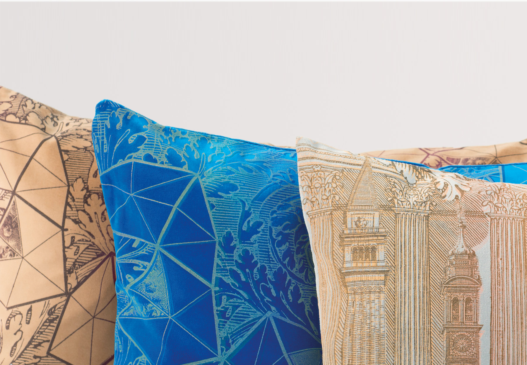 Exklusive Accessoires und Wohnideen aus Samt und Seide, inspiriert von den herrlichen Mustern und Farben venezianischer Textilkunst und Architektur.